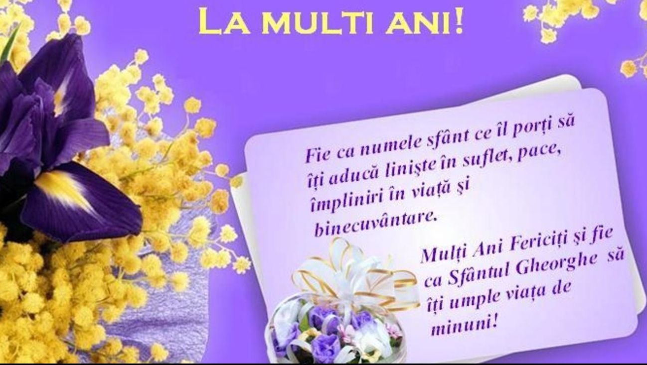 Îţi urez La mulţi ani, pentru că porţi acest nume şi fie ca Sfântul Gheorghe pe care îl reprezinţi, să-şi coboare ochii asupra ta şi să îţi dăruiască fericirea dorită şi liniştea interioară.
