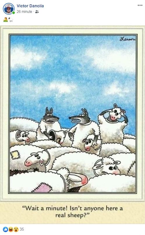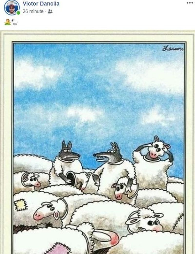Victor Dăncilă a făcut publică o fotografie ce ilustrează mai mulți lupi deghizați în oi.