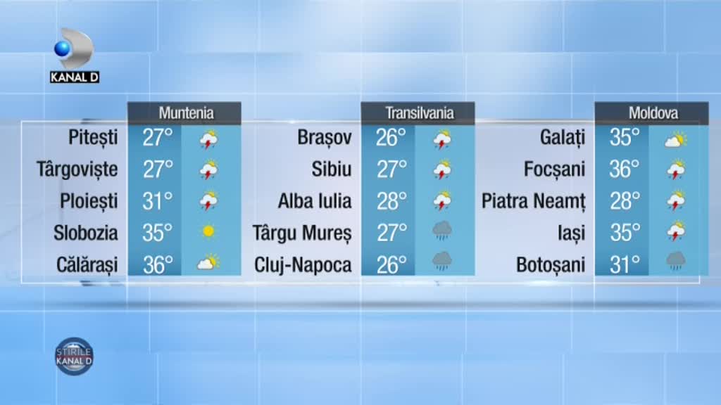 Stirea "Meteo 05.07.2022 seară" difuzata in cadrul Stirilor KANAL D din 5 07 2022