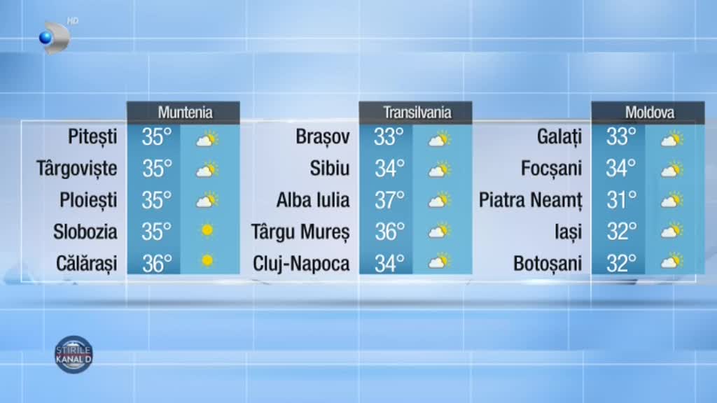 Stirea "Meteo 25.07.2022 seară" difuzata in cadrul Stirilor KANAL D din 25 07 2022