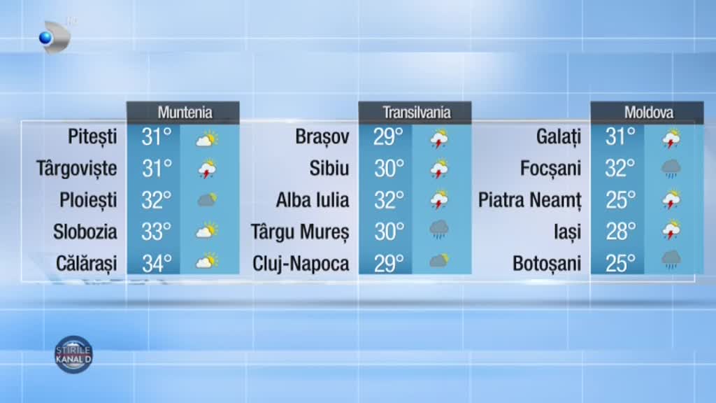 Stirea "Meteo seară 16.08.2022" difuzata in cadrul Stirilor KANAL D din 16 08 2022