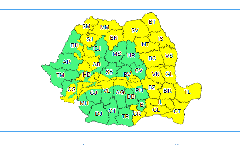 Meteorologii au emis avertizare Cod galben de instabilitate atmosferică şi ploi abundente pentru zeci de judeţe .