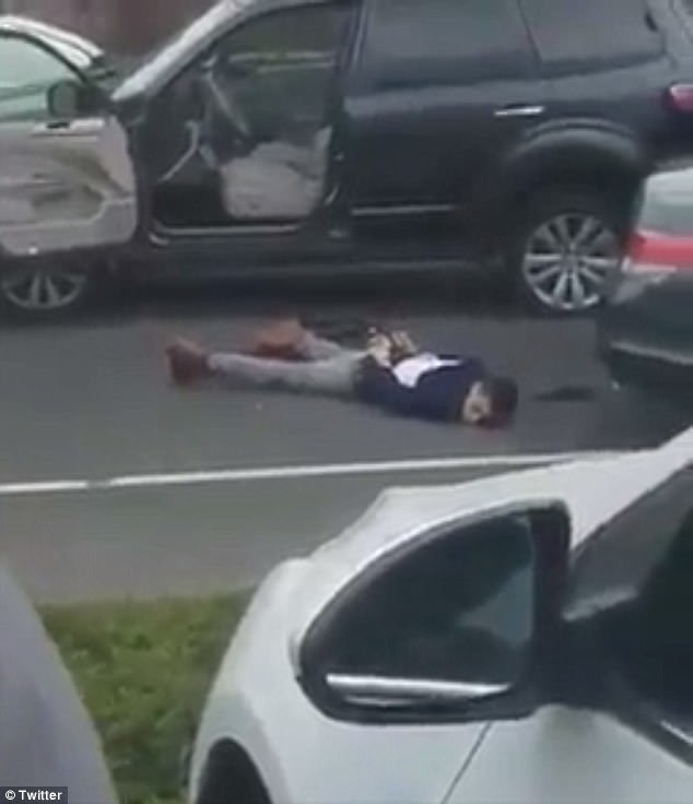 In imaginile realizate cu un telefon mobil, baiatul apare intins pe jos, cu mainile la spate si nu pare sa miste, insa la un moment dat intoarce capul intr-o parte. In tot acest timp, un ofiter sta langa el.