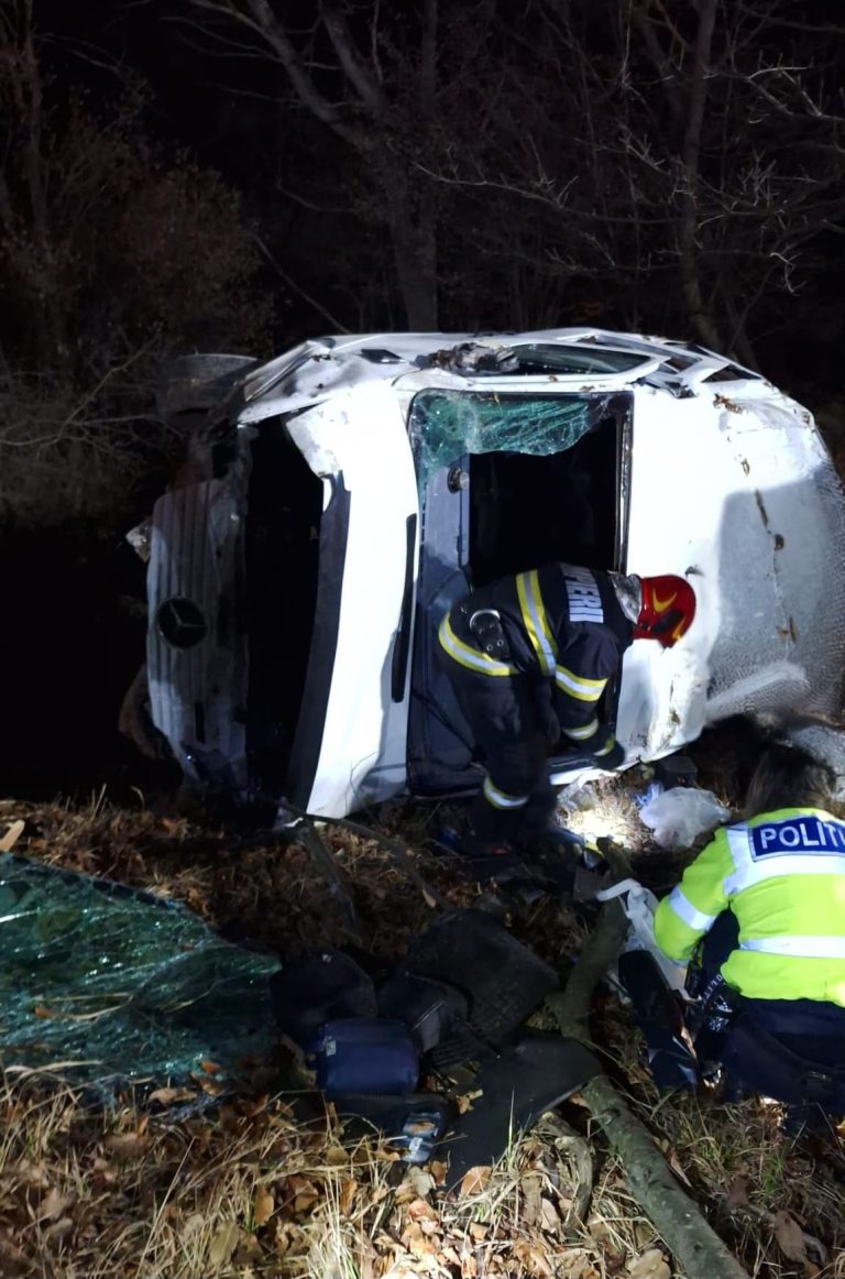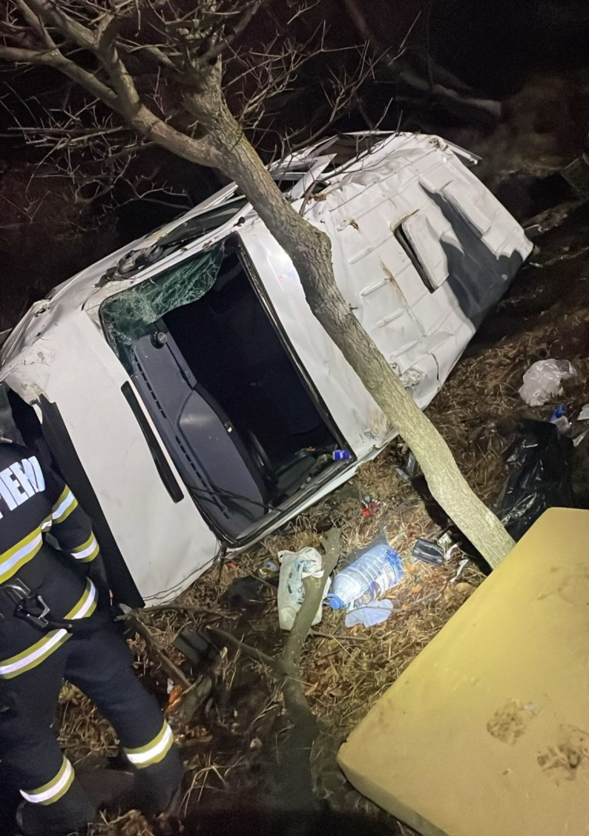 Un accident rutier grav a avut loc marți noaptea, pe DN1, în județul Brașov. Un microbuz în care se aflau 10 persoane s-a răsturnat într-o râpă.