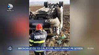 Stirea "Microbuz cu 12 călători, răsturnat pe șosea" difuzata in cadrul Stirilor KANAL D din 12 04 2022