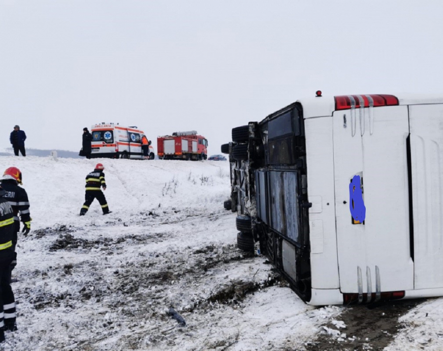 Centrul INFOTRAFIC din Inspectoratul General al Poliției Române a informat, la ora 14,40, că pe DN 24 Tecuci-Bârlad, între localitățile Gara Berheci și Priponeștii de Jos, județul Galați, un microbuz în care se aflau 17 persoane s-a răsturnat în afara părții carosabile.