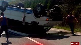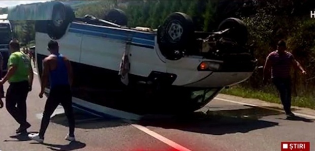 Un microbuz de calatori s-a rasturnat pe DN14, la Seica Mare, dupa care a luat foc.
