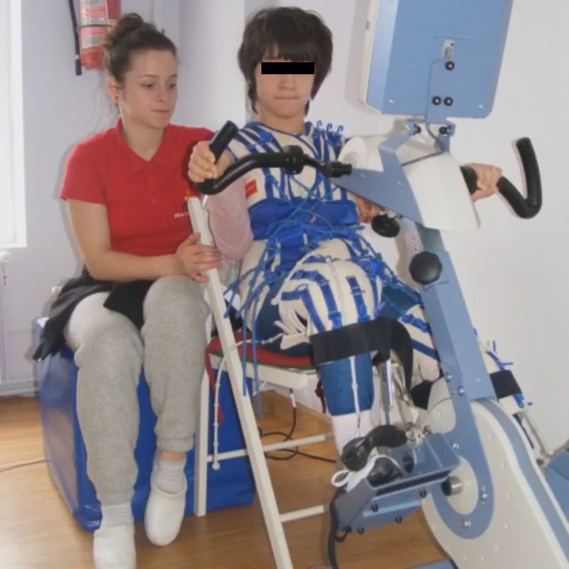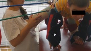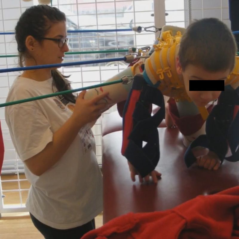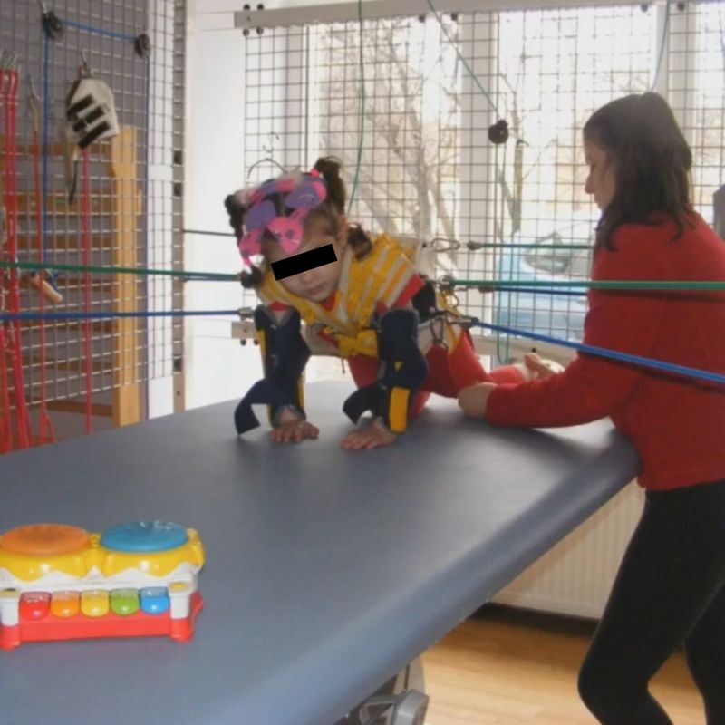 4 din 8 | Mihai Nesu, inger pentru copiii cu probleme locomotorii. Iata-i pe micuti la lucru, in sala de recuperare, cum sunt ajutati sa reinvete sa paseasca!