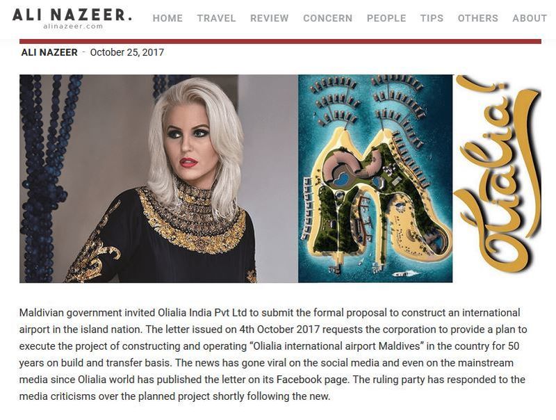 Anca Verma si sotul ei, Abhishek Verma, vor sa investeasca peste 500 milioane dolari in constructia unui aeroport in Maldive. Ei au primit o invitatie, in acest sens, de la guvernul acestui stat iar grupulk de firme pe care romanca il conduce din calitatea de presedinte: Olialia India si Olialia World a anuntat ca sunt sanse mari sa bata palma pentru realizarea acestui proiect. Noul aeroport din Maldive s-ar numi „Olialia International Airport Maldives”, investitia fiind acoperita 100% de catre grupul romancei, conform presei din Asia.
