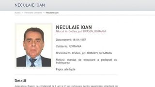 Poliţia Română a făcut publice semnalmentele lui Ioan Neculaie pe pagina de web a instituţiei la secţiunea  „persoane urmărite”, acesta fiind dat în urmărire pentru punerea în aplicare a unui mandat de executare a doi ani