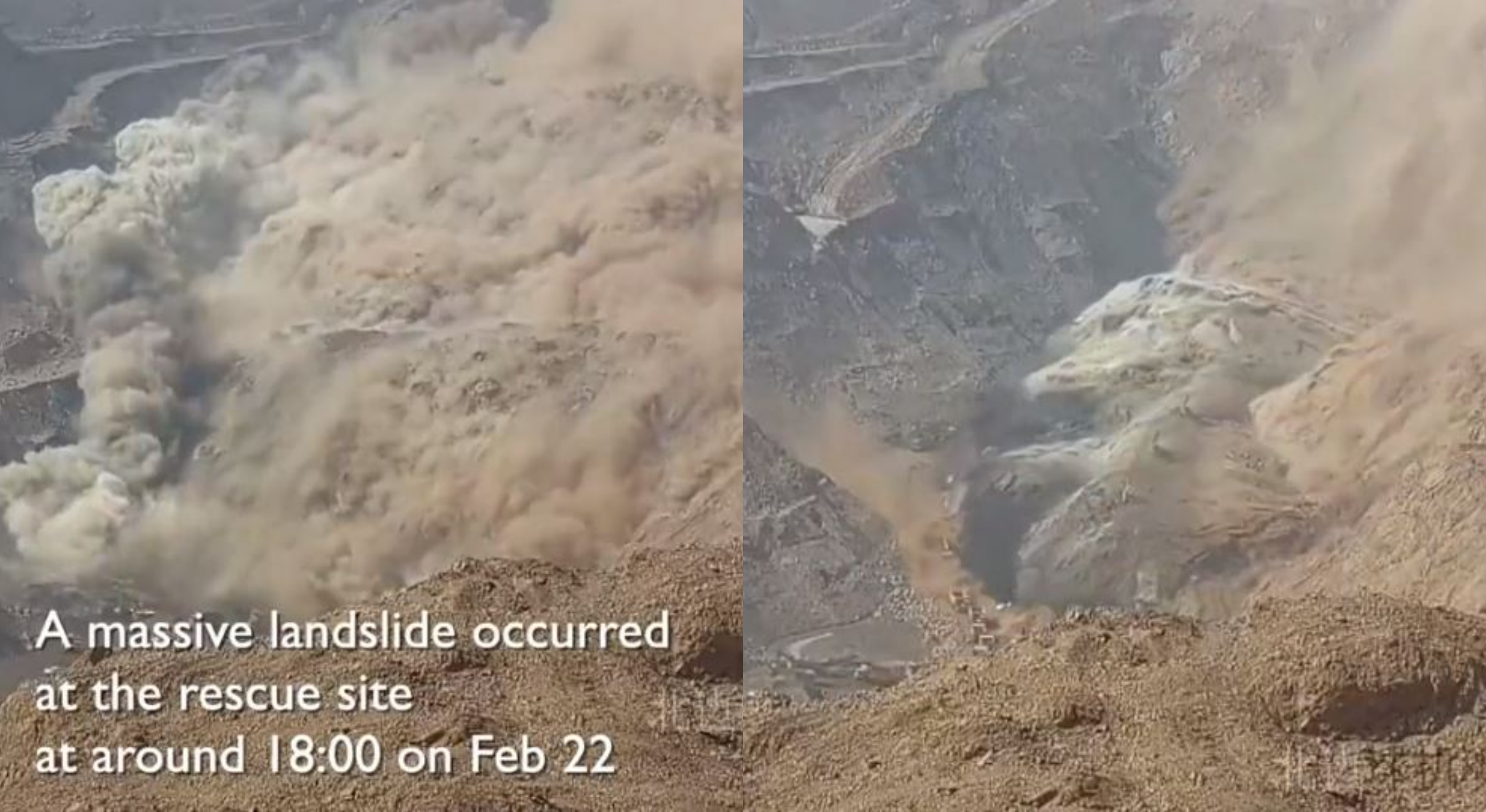 stat CCTV.O a doua alunecare de teren a oprit încercările de salvare, a relatat presa de stat, riscul unor noi surpări fiind foarte mare din cauza zonei întinse pe care a avut prăbușirea.