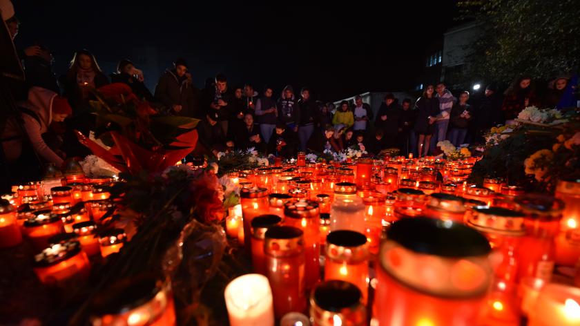 In fata clubului Colectiv au fost aproximativ 6.000 de persoane. Multi continua sa vina la altarul din fata locului tragediei, unde se aprind lumanari si se depun flori in continuare.