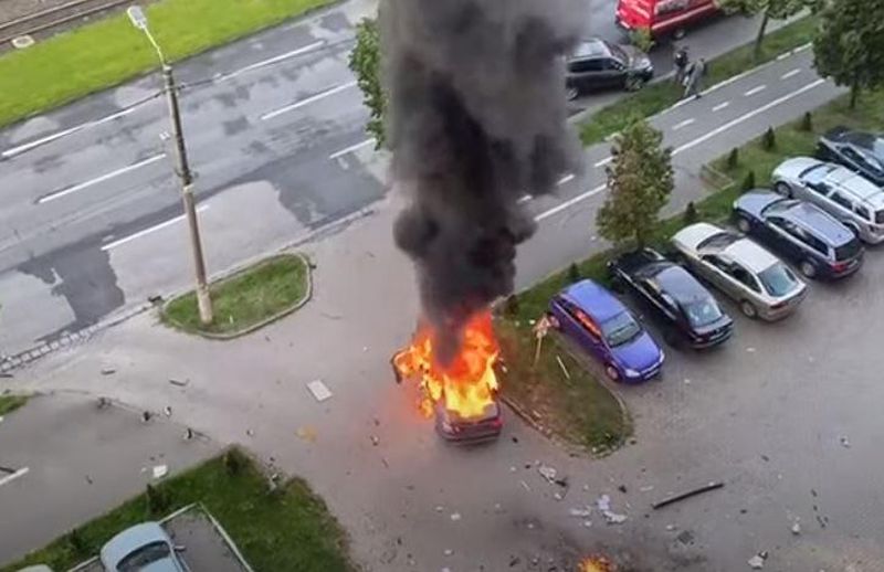 Bucăți întregi din autoturism au fost aruncate la câțiva metri, iar geamurile mașinilor și apartamentelor din zonă s-au făcut țăndări.