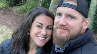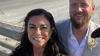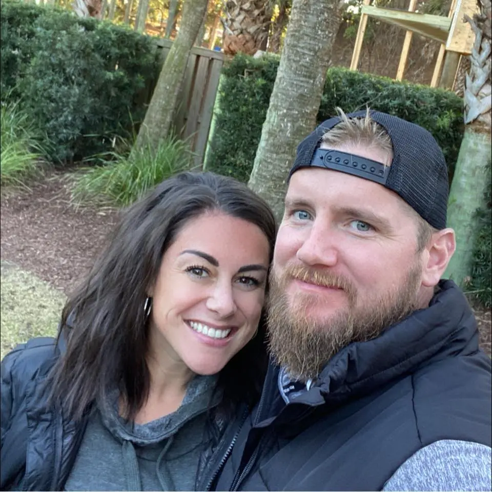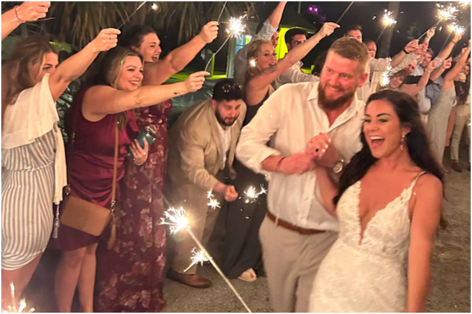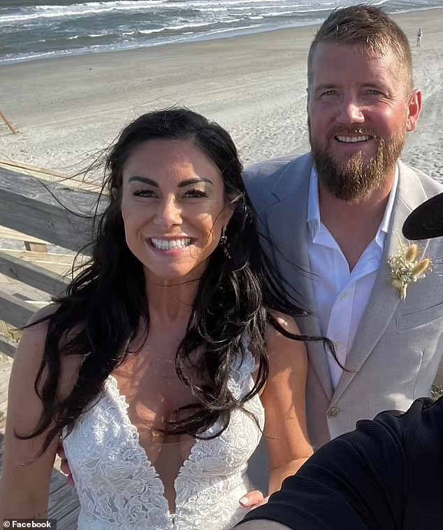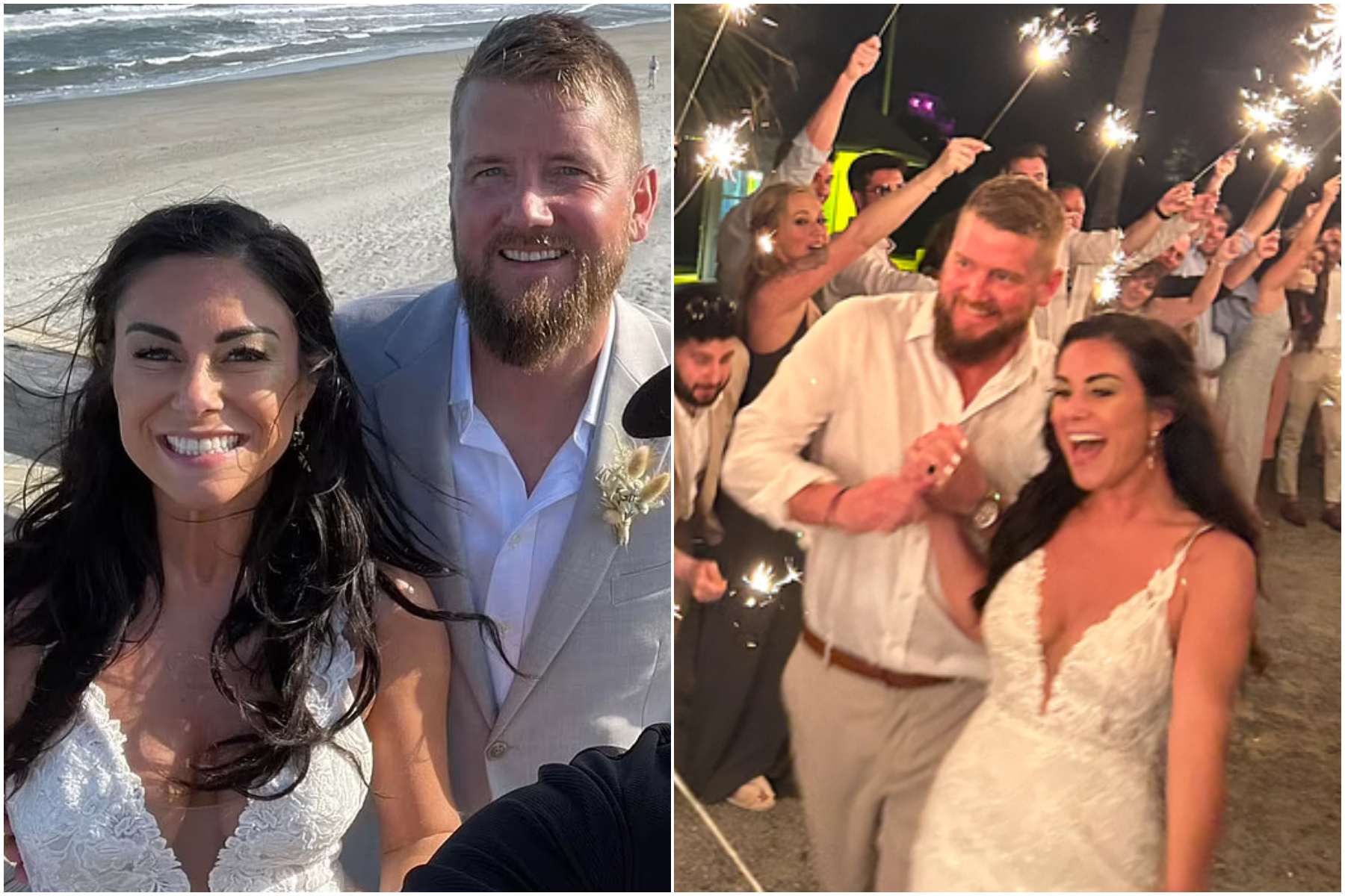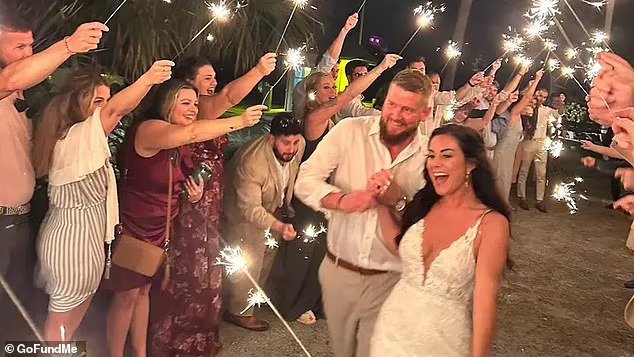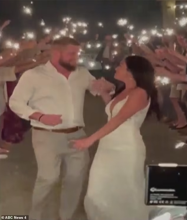 Cei doi proaspăt căsătoriți Samantha Hutchinson și soțul ei, Aric, s-au urcat într-o mașinuță de golf după ce au plecat de la nunta lor de pe plaja Folly Beach, Carolina de Sud.