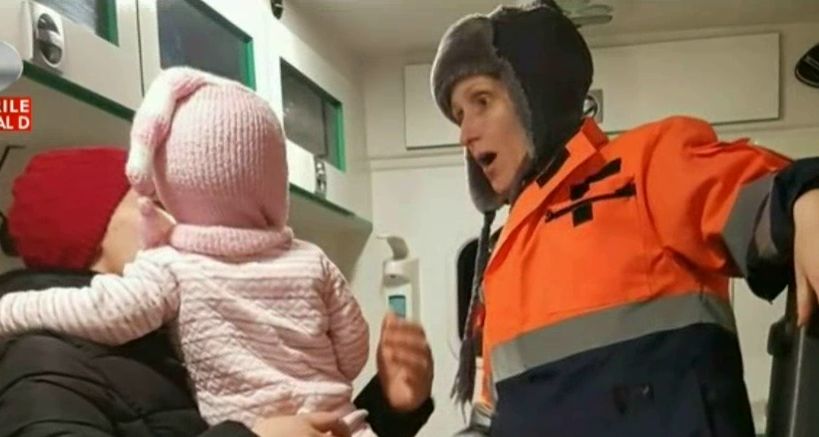 2 din 2 | Misiune dificila pe ger la Constanta. Copilul din imagini a fost salvat de pompieri si dus la spital. Micutul avea probleme de sanatate