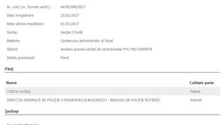 Un alt detaliu care incurca si mai mult lucrurile in cazul mortii lui Turcu este ca omul de afaceri nu a parut sa-si premediteze fapta. Cu doar doua saptamani inainte sa se spanzure, Vasile Turcu a mers la Judecatoria Sectorului 1 si a depus o cerere de anulare a unei contraventii rutiere.