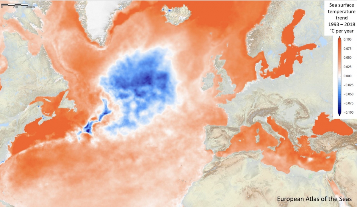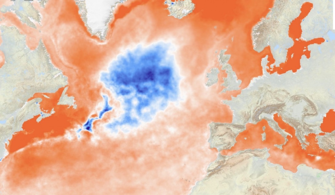 Stefan Rahmstorf, un renumit oceanograf german, a explicat într-un interviu acordat publicației „De Morgen” că această „pată albastră” reprezintă o zonă unde temperatura apei scade anormal.