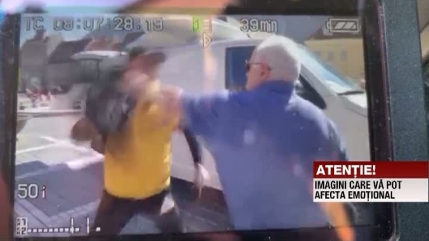 Bărbatul lovit a fost dus la duba jandarmilor pentru a fi identificat şi pentru a se stabili dacă vrea să depună plângere.