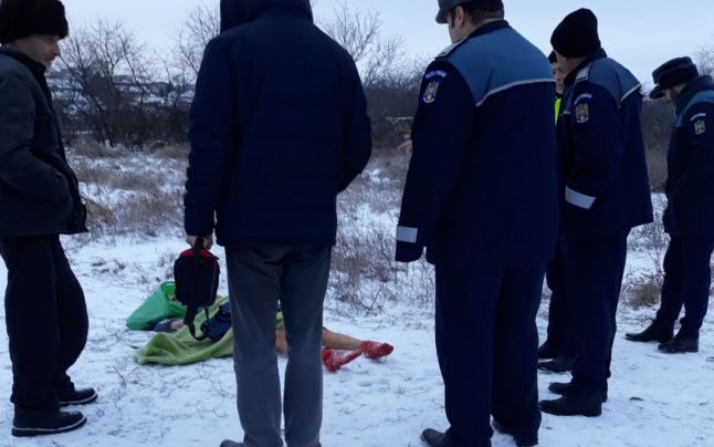 Femeia era descălţată, acoperită cu o pătură, peste care era pusă o pereche de pantaloni. La faţa locului au ajuns poliţiştii care fac cercetări.