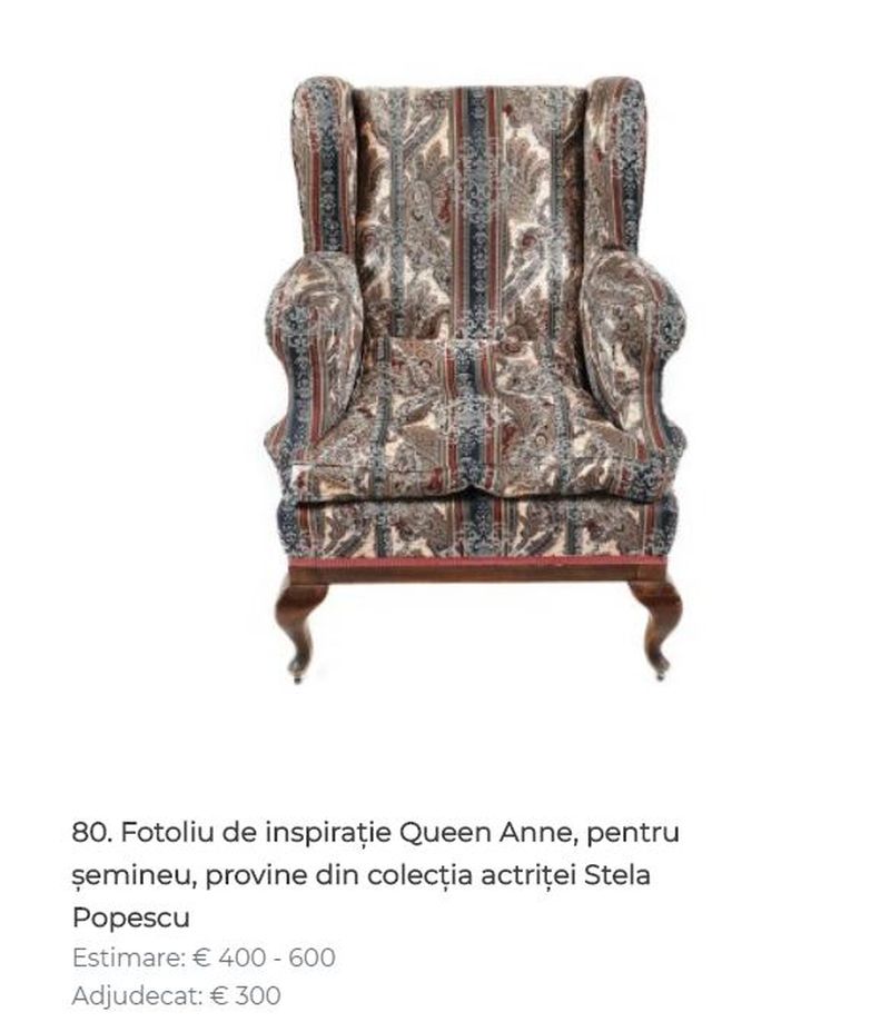 Fotoliul preferat al Stelei Popescu, vândut la licitatie cu 300 de euro