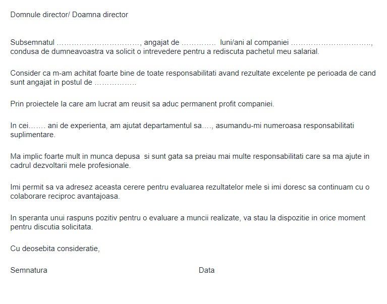 Model de cerere pentru mărirea salariului