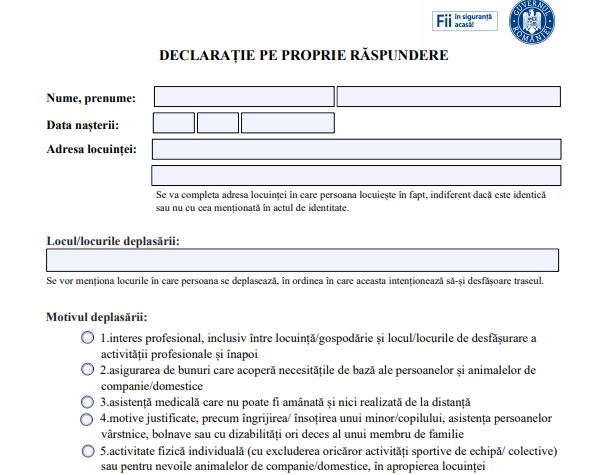 Noua variantă a declarației pe propria răspundere poate fi descărcată în formatat PDF de AICI