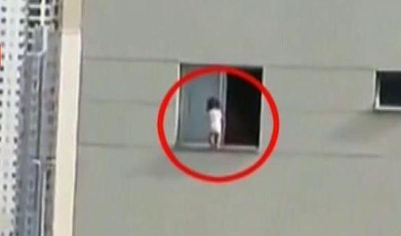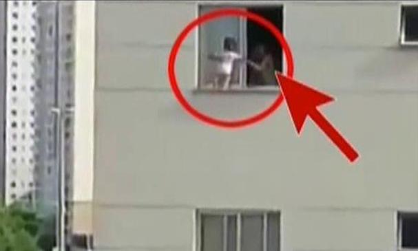 Imagini socante au starnit panica in mediul virtual! Un copil se plimba pe marginea unei ferestere, la etajul trei al unui bloc! Urmeaza imagini care va pot afecta emotional! ##VIDEO13935##