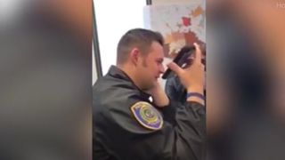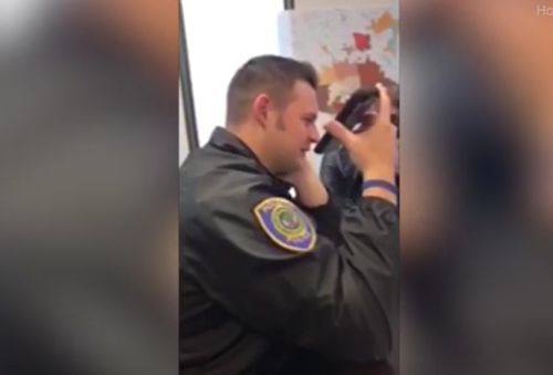 Moment emotionant! Un politist a izbucnit in plans cand a primit acest mesaj video de la fiica lui de 4 ani