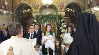 Evenimntul are loc la Biserica „Sf. Elefterie” din Bucuresti, iar fetita a avut trei nasi: un cuplu, prieten cu parintii ei, si cea mai buna prietena a Oanei Niculescu Mizil, o tanara din Liban. Slujba a fost oficiata de patru preoti.