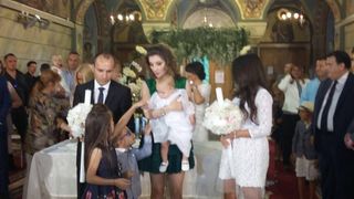 Marian Vanghelie si Oana Mizil sunt in spatele nasilor si par extrem de emotionati. Micuta Maria arata ca o printesa, fiind imbracata intr-o rochita alba si pare ca este rasfatata e toata lumea. Dupa slujba religioasa, va avea loc o petrecere, la Snagov.