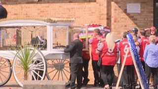 La slujba de inmormantare aceasta a fost primi de supereroi. Fanii mai multor echipe de fotbal au pus rivalitatile deoparte si au venit pentru a-si lua ramas bun de la micul suporter.
