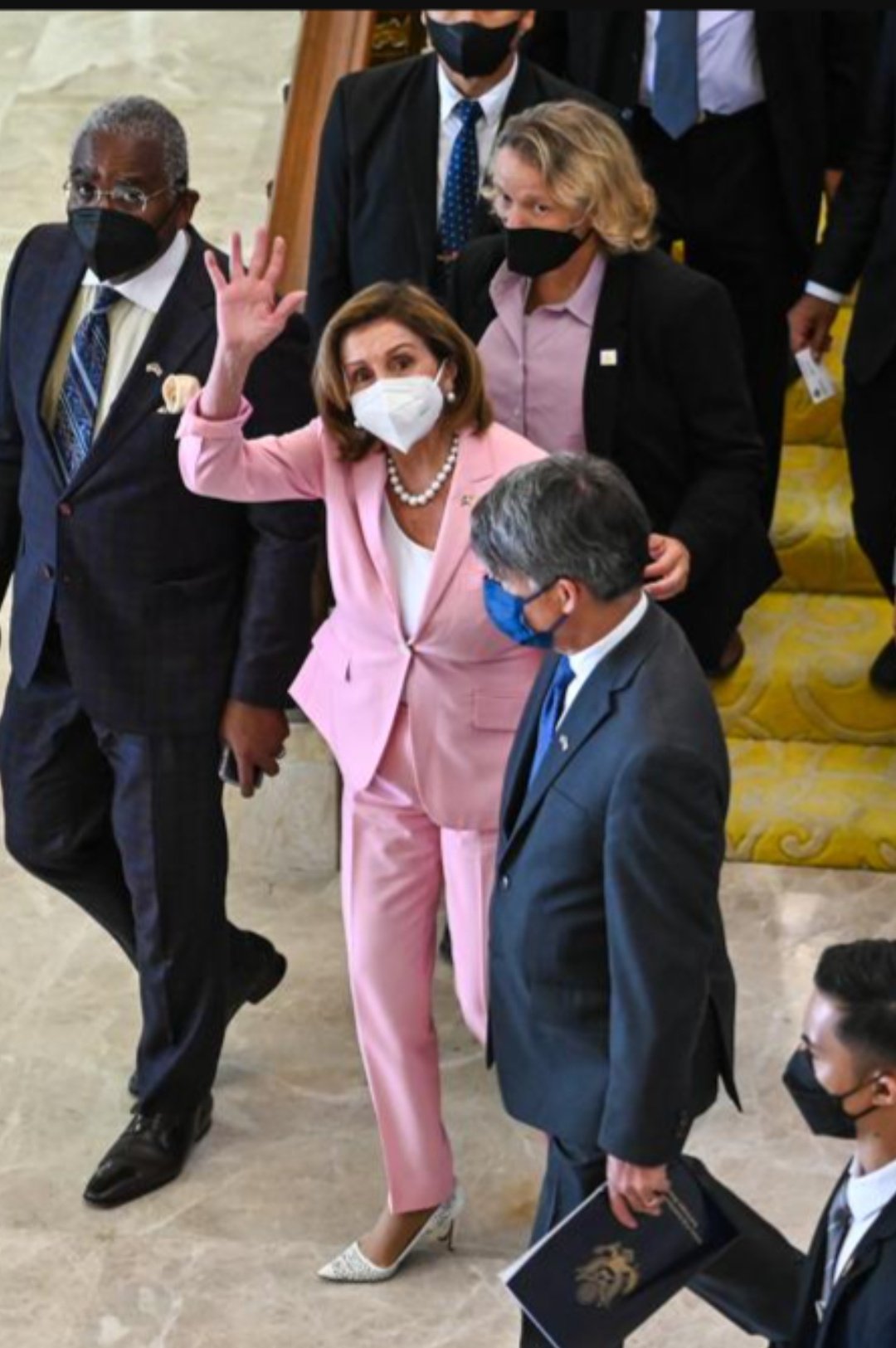3 din 4 | Nancy Pelosi a purtat un costum roz la sosirea în Taiwan