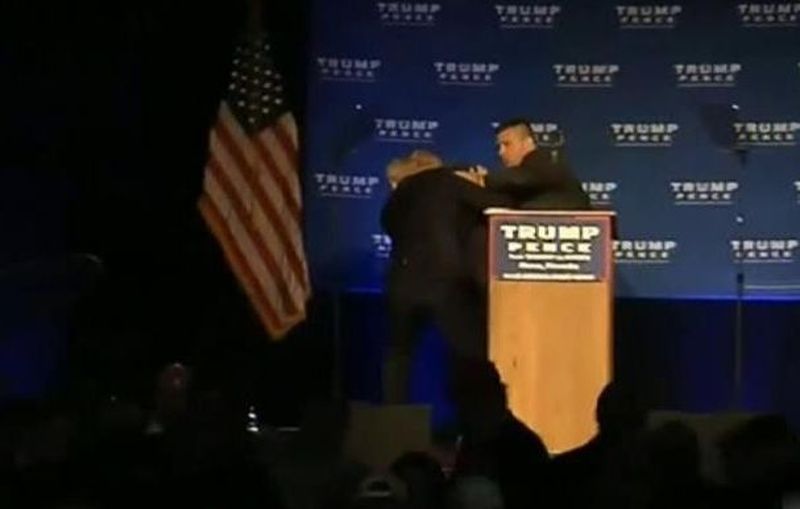 3 din 4 | Momente de panica in campania prezidentiala din Statele Unite ale Americii. Donald Trump a fost scos de pe scena de garzile de corp chiar in timp ce tinea un discurs.
