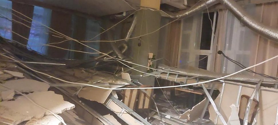 În urma relatărilor martorilor oculari, plăcile de rigips de pe tavanul sălii s-au prăbușit.