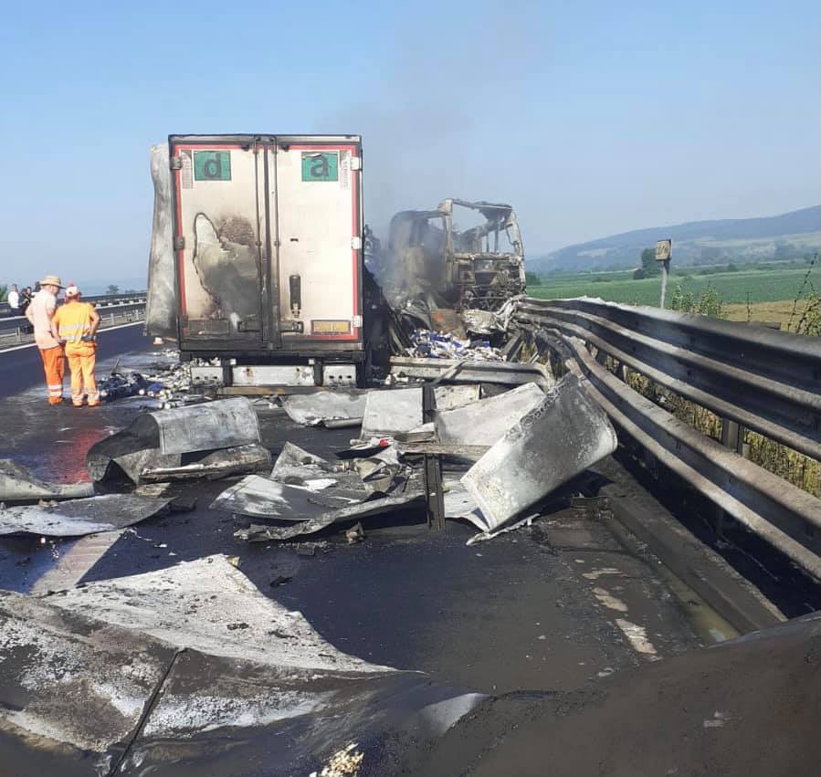 "În această dimineaţă, la ora 06,33, a fost anunţat prin serviciul 112 un incendiu puternic la un autocamion ce se deplasa pe autostrada A1, pe direcţia de mers Orăştie- Deva. Pompierii din cadrul Detaşamentului de Pompieri Orăştie au intervenit rapid cu două autospeciale de stingere cu apă şi spumă şi o ambulanţă SMURD", a precizat ISU Hunedoara într-un comunicat ulterior.