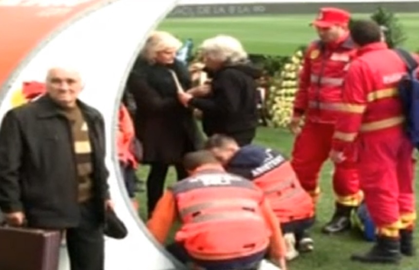 Momente grele pe stadionul din Bănie, acolo unde este depus sicriul cu trupul fotbalistului. Soţia lui Ilie Balaci s-a prăbuşit pe teren. Dana Balaci a început să se simtă rău, iar apropiaţii au chemat o ambulanţă SMURD. Mama lui Ilie Balaci este sfârşiată şi ea de durere şi abia se ţine pe picioare.