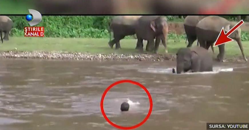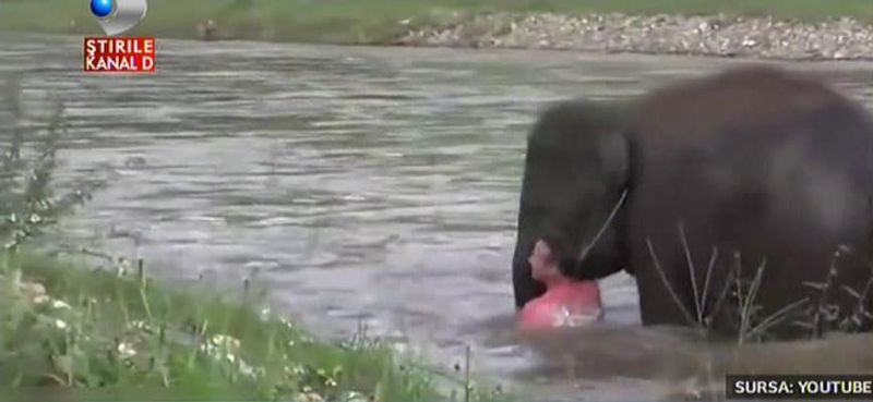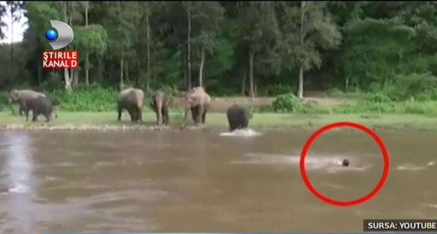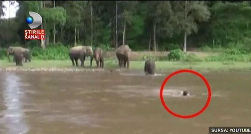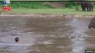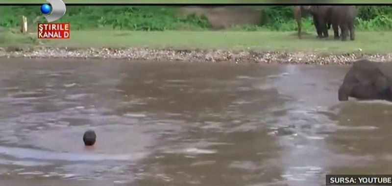 5 din 5 | Momentul emotionant cand un elefant salveaza de la moarte un barbat gata sa se inece. Animalul il scoate cu trompa pe barbat din apa