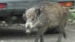 N-a văzut ursul, ci mistreţul! Aşa că n-a amuţit! Un şofer a filmat un porc sălbatic exact în momentul în care îi apare în faţă pe mijlocul şoselei. ##VIDEO31530##