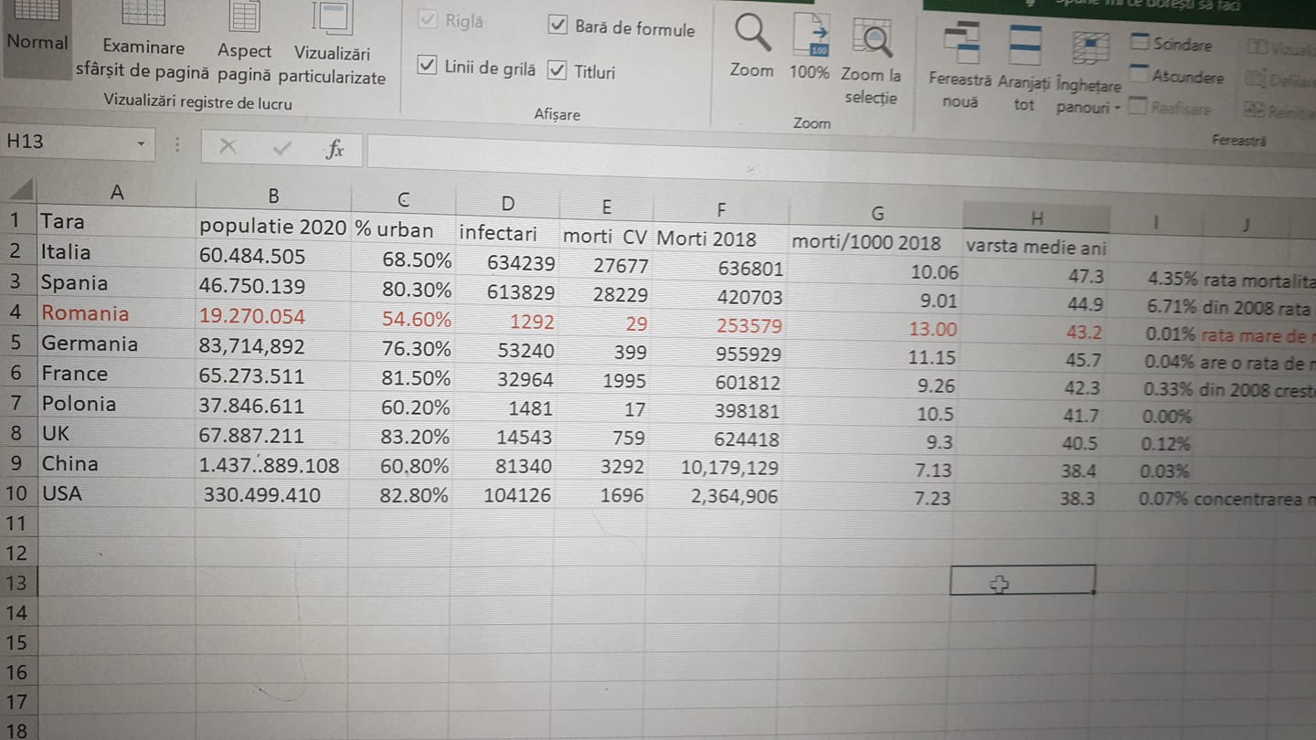 În urmă cu câteva zile, Tatoiu a explicat și cum a făcut calculele. ”Am comparat numarul de morti raportat pana astazi în câteva tari. Am comparat cu numarul mortilor raportati in 2018. Singurele tari unde procentele sunt realmente dramatice sunt Spania cu 6.71% si Italia cu 4.35%. La noi 0.01%. Pana astazi 28 martie. Inseamna ca in Spania si Franta nu doar CV19 poarta vina, este o problema de management al sistemului de sanatate.Varsta