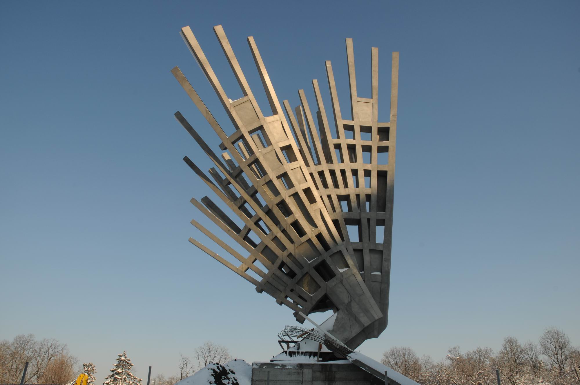 Monumentul este reprezentat sub forma a trei aripi, toate din otel inoxidabil, cantareste 100 de tone si are o inaltime de 20 de metri. Sculptorul proiectului este Mihai Buculei, al carui tata a fost detinut politic la Aiud.