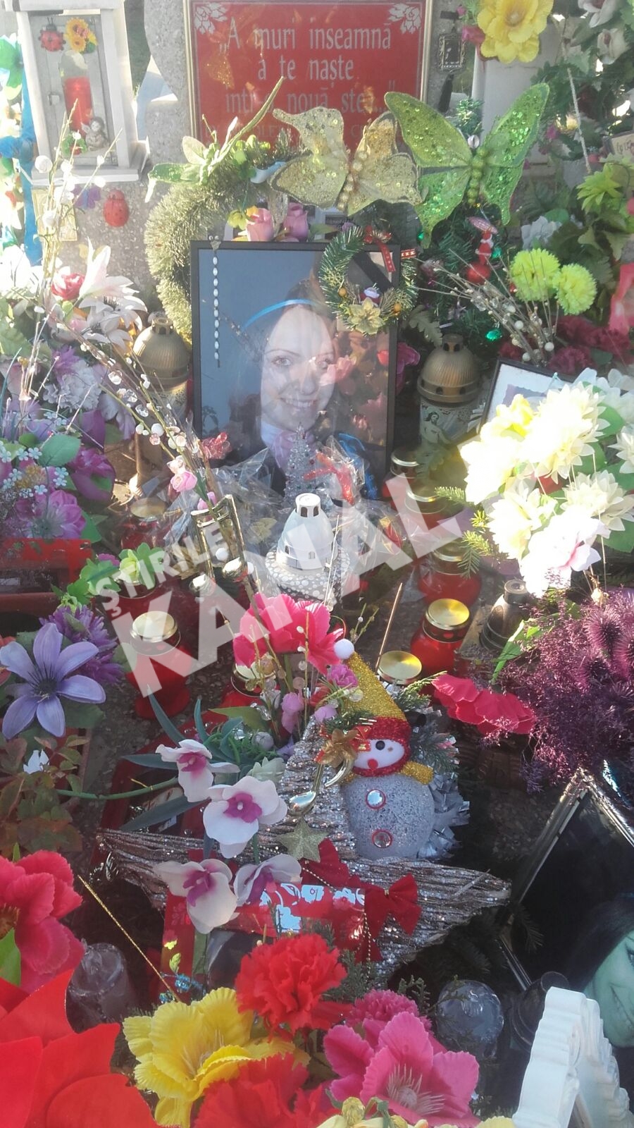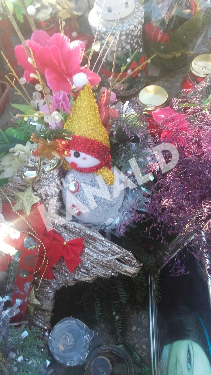 De 1 decembrie, ca in fiecare an scurs de la plecarea fetei in lumea celor drepti, femeia a impodobit locul de veci cu globuri, figurine stralucitoare, candele pictate manual, beteala si coroane amplasate metodic printre pozele cu solista.