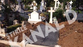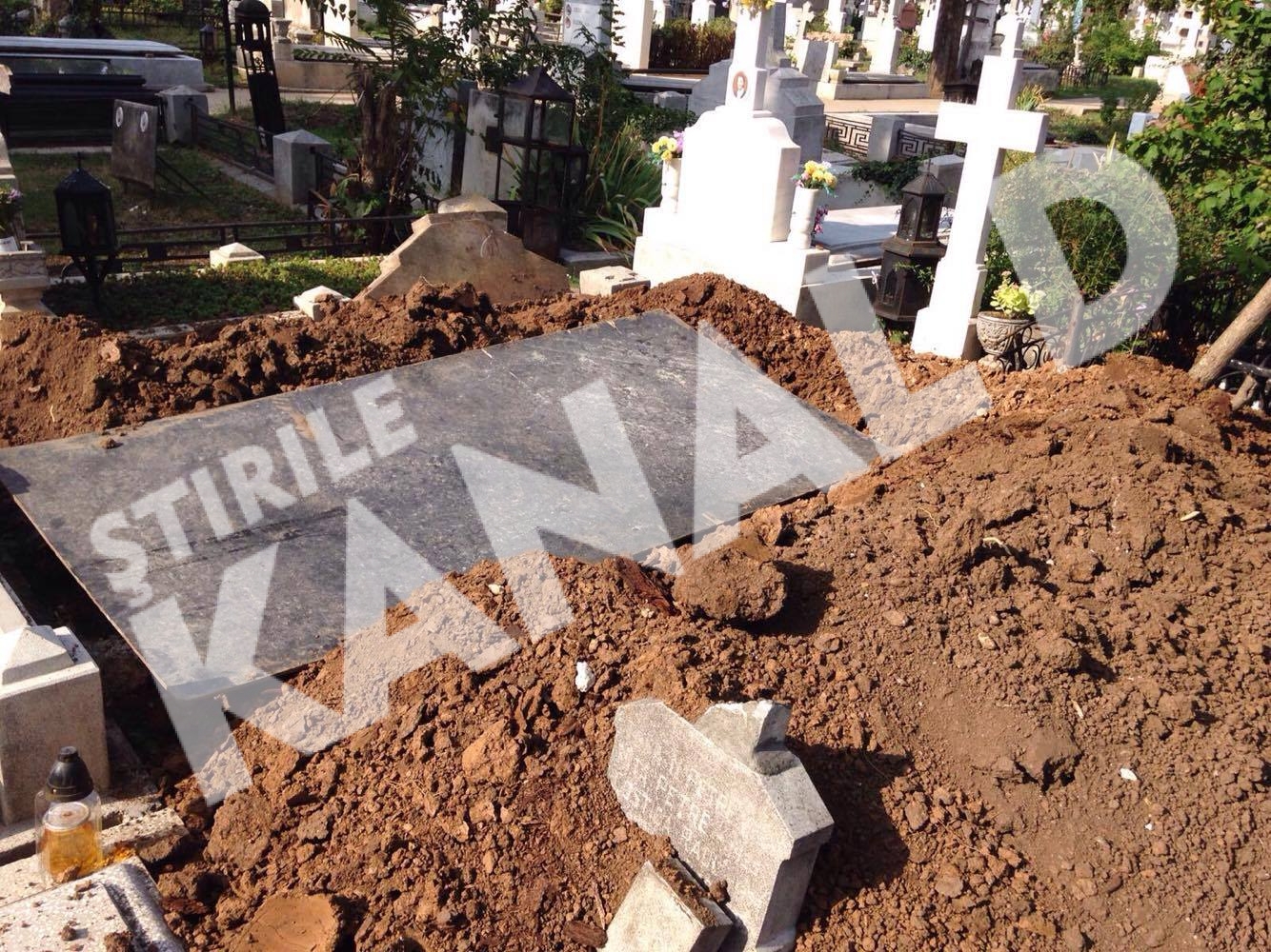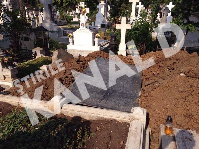 Monumentul vechi din piatra, spart si deteriorat era ieri dupa-amiaza inca lasat acolo, pe jumatate ingropat in pamantul scos la suprafata. Pe bucata de cruce se mai distinge chiar daca cu greu numele celor care au ocupat, inaintea actorului, respectivul loc de veci: Petre, Costica.