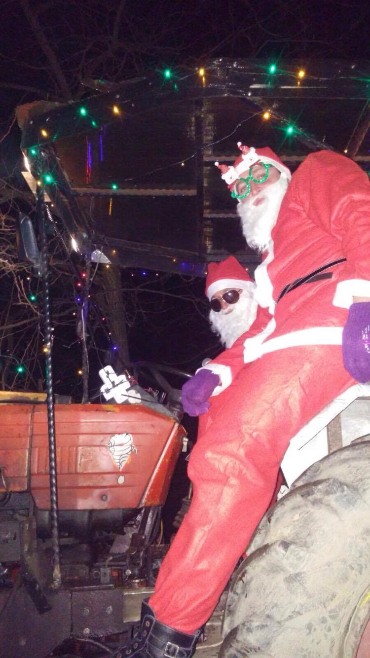 Mos Craciun a ajuns si la ei, si nu oricum ci intr-un tractor decorat cu multe luminite. Micutii care se aflau pe ulitele satului la colindat, au luat cu asalt tractorul si au vrut sa se urce langa Mos Craciun, care si-a luat cu el si un ajutor.
