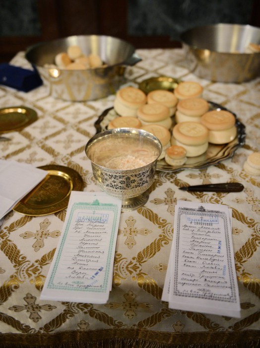 Pe lângă acestea trebuie să mai avem tamaie, cărbuni și un prosop. Acestea se înmânează preotului la Sfânta Liturgie din Sâmbătă Morților.