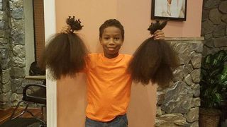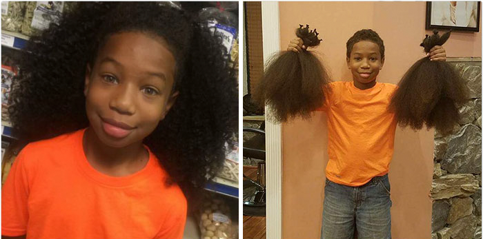 2 din 4 | Motivul incredibil pentru care acest baiat de 8 ani si-a lasat parul sa creasca! Gestul sau a primit mii de aprecieri din intreaga lume