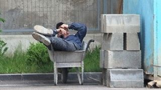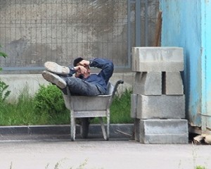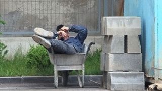 Munca la romani! Muncitori din Buzau, filmati in timp ce dormeau in timpul programului! Si-au facut pat din roabe si caramizi!