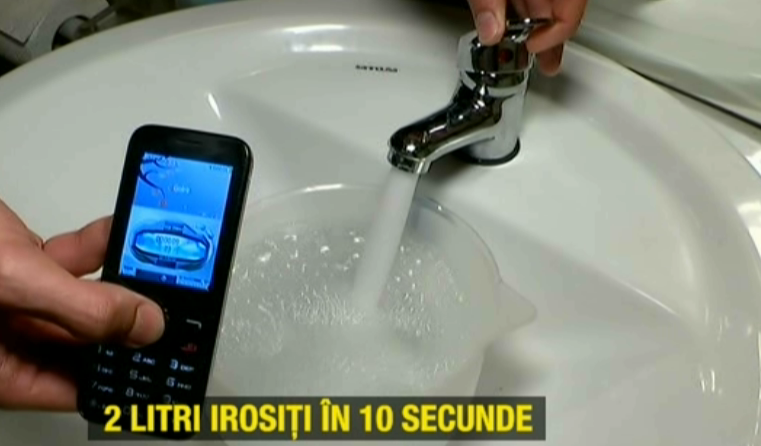 Sa vorbim de gesturile de zi cu zi care ne fac sa irosim apa. Iata un test simplu pe care fiecare dintre dumneavoastra il poate face. Recipientul din imagine are 2 litri. Testul cu telefonul mobil ne arata ca intr-un interval de aproximativ 10 secunde se umple.