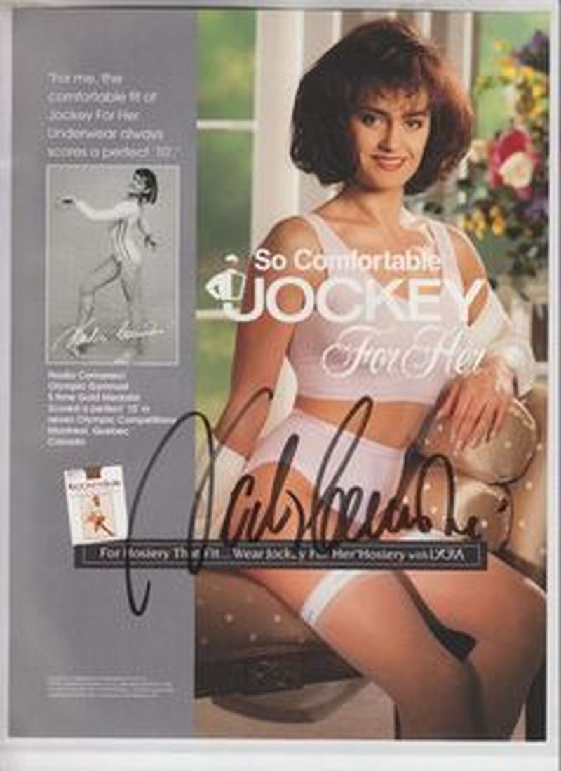 americane. Desi la acel moment se iubea cu Panait, Nadia a jucat in reclama alaturi de Bart Conner, viitorul ei sot, care era imaginea masculina a firmei! Invitata in platoul unei emisiuni tv, in 1992, Nadia a povestit cu umor ce inseamna pentru ea o asemenea aparitie: "In Romania, inainte de 1989, nu se gasea deloc lenjerie intima, sau daca se gasea se gaseau greu un singur tip.