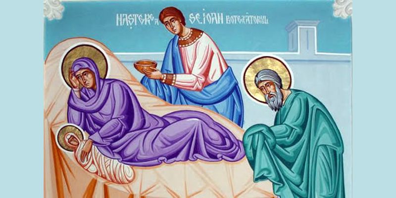 Sfântul Ioan Botezătorul s-a născut în cetatea Orini, în familia preotului Zaharia. Elisabeta, mama sa, era descendentă a semintiei lui Aaron. Nașterea prorocului Ioan s-a petrecut cu șase luni înaintea nașterii lui Iisus. Nașterea să a fost vestită de către îngerul Gavriil lui Zaharia, în timp ce acesta slujea la templu.