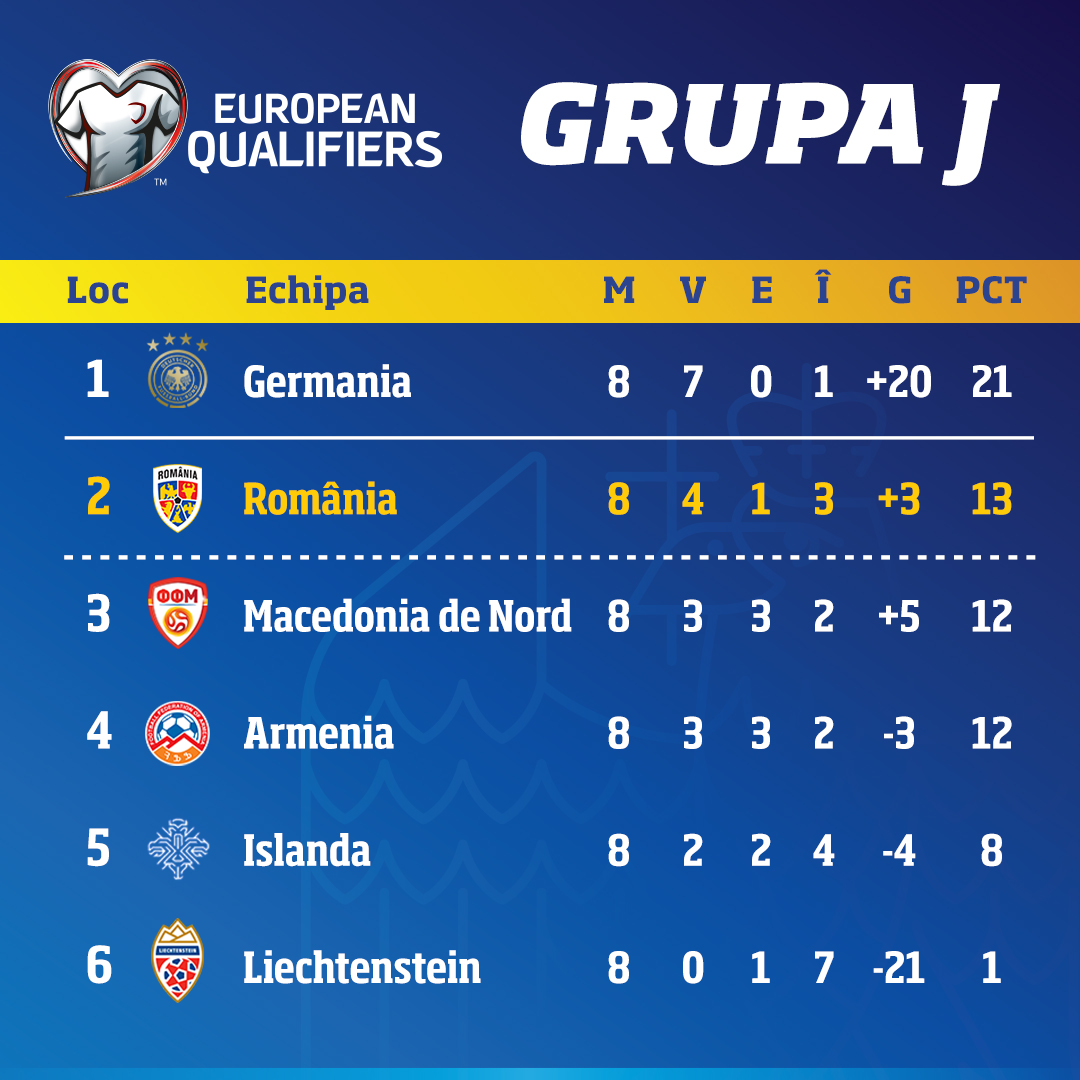 În celelalte meciuri din grupa României, Macedonia de Nord a fost spulberată pe teren propriu de Germania, scor 0-4, iar Islanda a trecut cu scorul de 4-0 împotriva statului Liechtenstein.